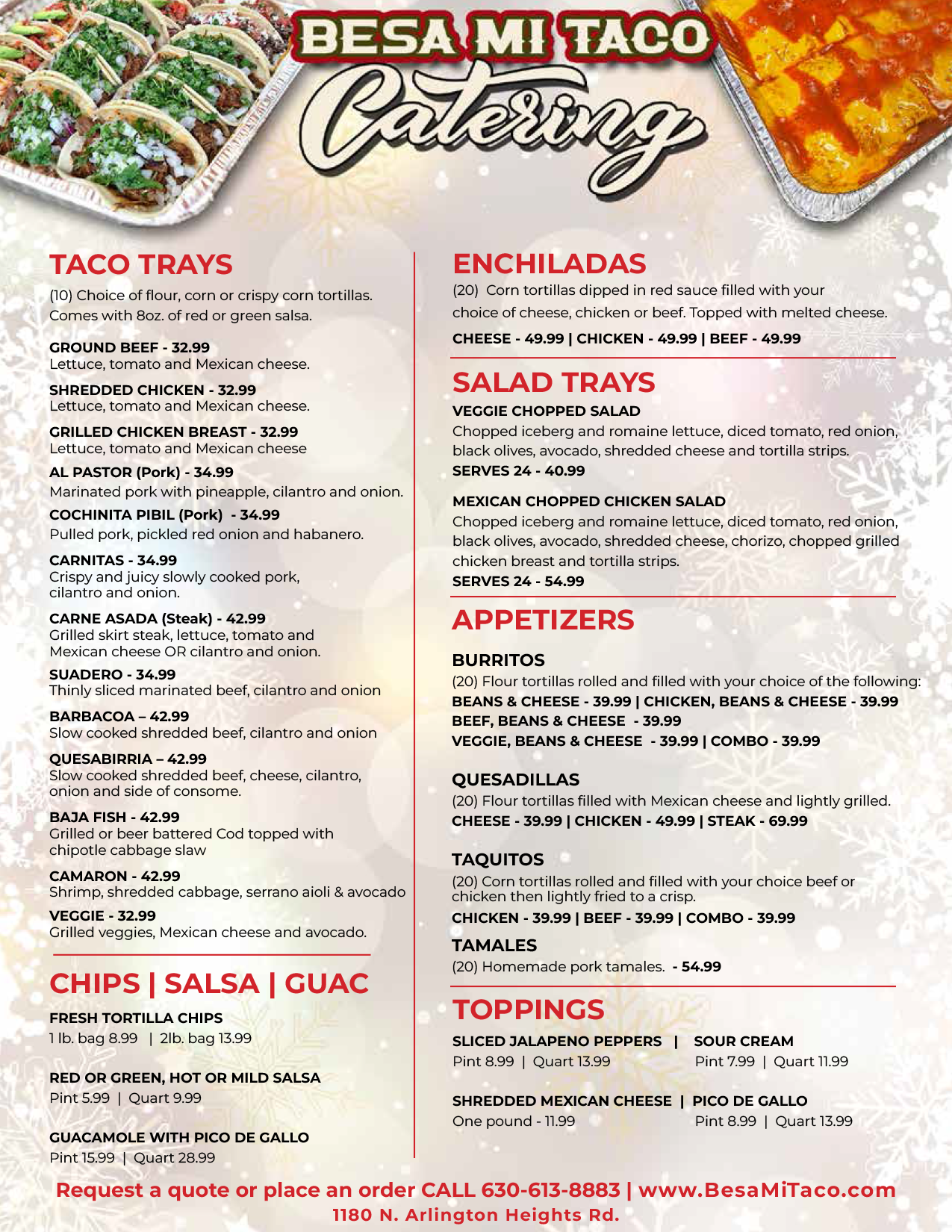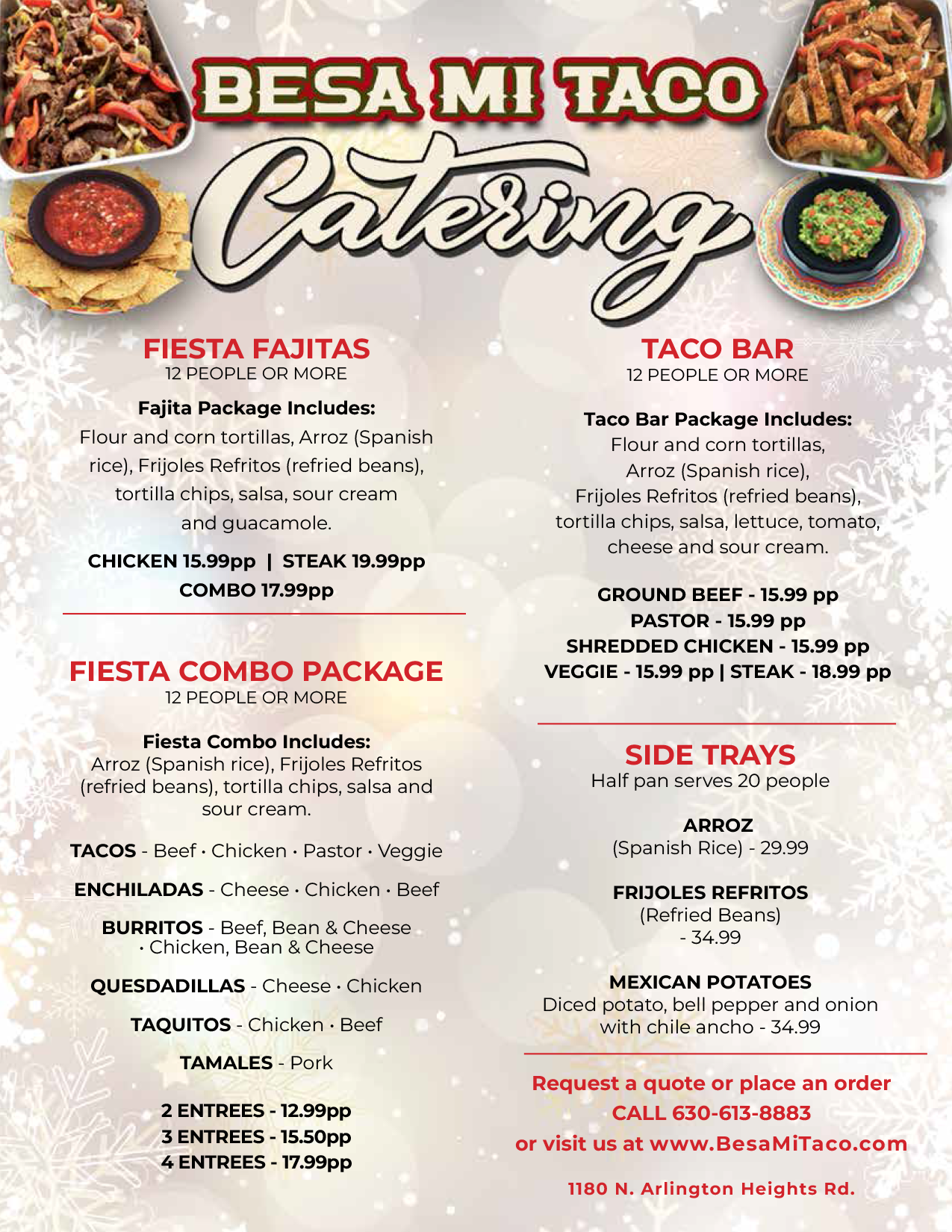 BESA MI TACO FAMILY AND OFFICE CATERING MENU